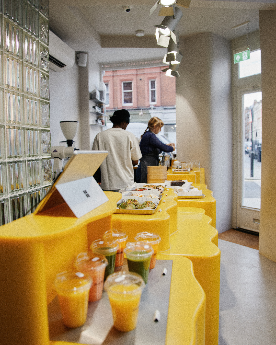 The accent yellow bar is the first thing you see as you approach the corner of Dorset Street and Chiltern Street making our cafe an eye catching moment for your guests to arrive to. Take over the yellow bar, dress it for your event, create a custom smoothie, whatever your plans are, we can help bring them to life.